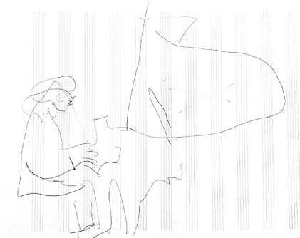 Nous jouons nos compositions, des oeuvres de Bill Evans, Bobo Stenson, John Taylor ainsi que quelques saucissons américains.